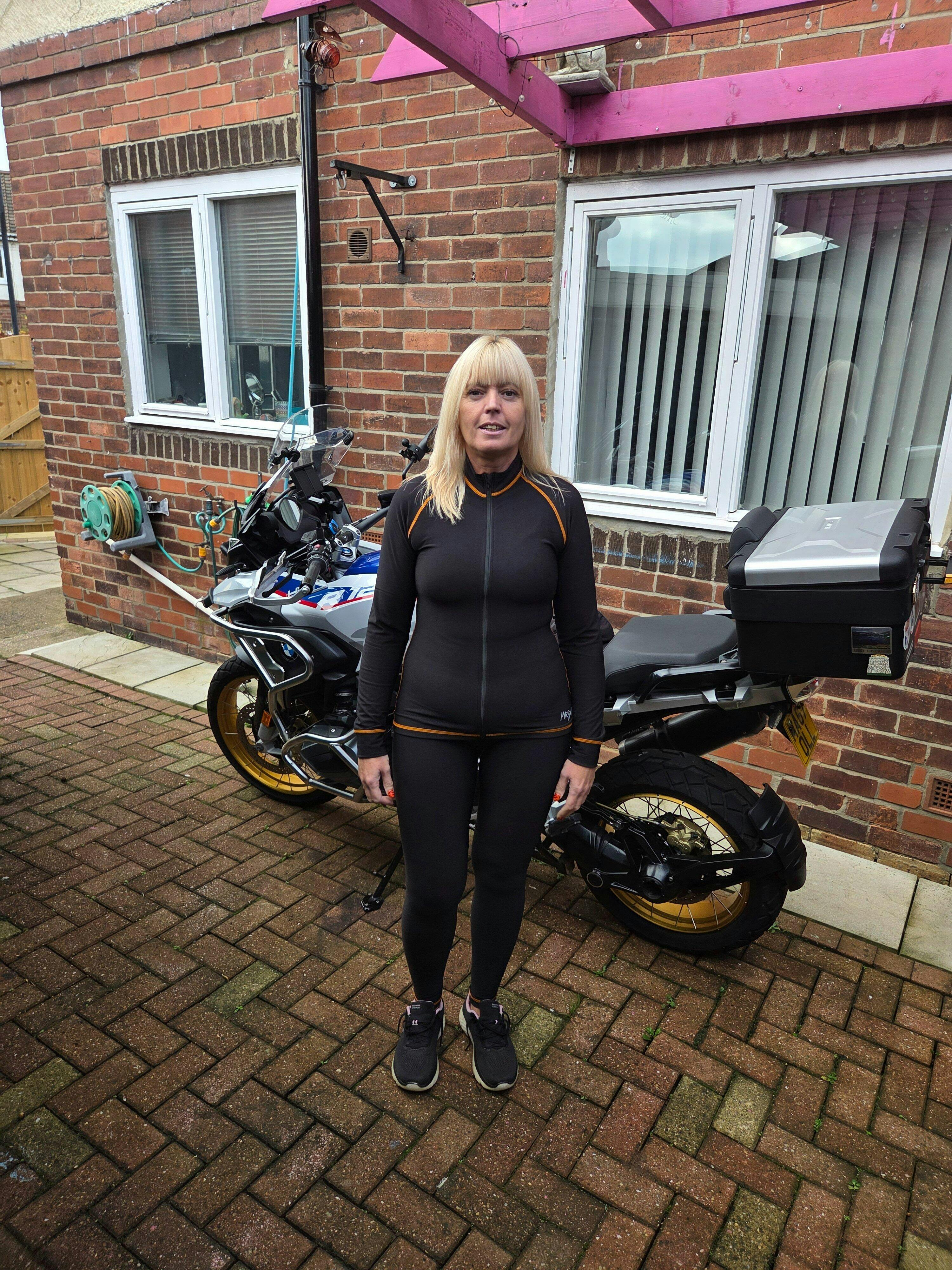 Bought the jacket to go with the trousers I bought previously from motogirl. Bought a size M in both and I am usually a size 12. Keeps you nice and warm underneath your usual bike wear.